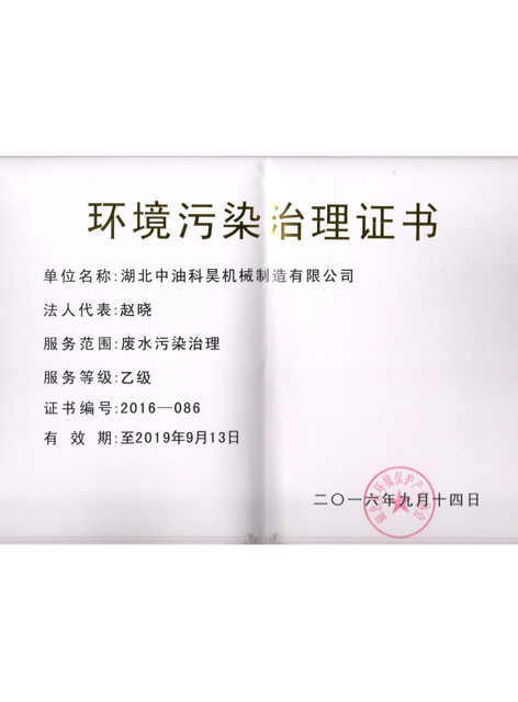 中油科昊屬于第四屆湖北省環(huán)境保護產(chǎn)業(yè)協(xié)會常務(wù)理事單位;通過ISO9000審核獲得油田廢水、廢油、廢油泥、壓裂返排液處理環(huán)保設(shè)備的設(shè)計及生產(chǎn)資質(zhì);獲得環(huán)境污染治理資格證書;2016年,公司生產(chǎn)的壓裂液返排車獲得湖北省重大科技專項??脐粓猿譃橛脩舸蛟靸?yōu)質(zhì)、專業(yè)、定性化石油環(huán)保解決方案,更好的為客戶創(chuàng)造品質(zhì),讓用戶獲得價值。